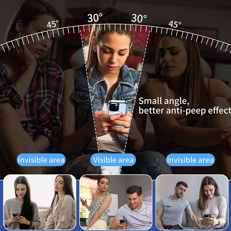 🛡️ Bescherming tegen piepen: De voorkant is duidelijk zichtbaar en de zijkant wordt automatisch donkerder om privacylekkage effectief te voorkomen.