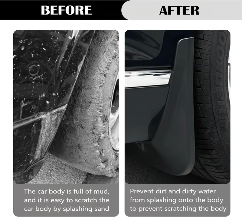 【Voorkom opspattend vuil】Laat opspattend vuil uw prachtige autocarrosserie niet bedekken! Dit heeft niet alleen invloed op de esthetiek van de auto, maar ook op uw rijervaring! Laat deze praktische spatlappen een sterk schild worden voor uw geliefde auto! Ze kunnen opspattend vuil op autobanden en carrosserie aanzienlijk voorkomen. Houd uw auto er altijd schoon uit!