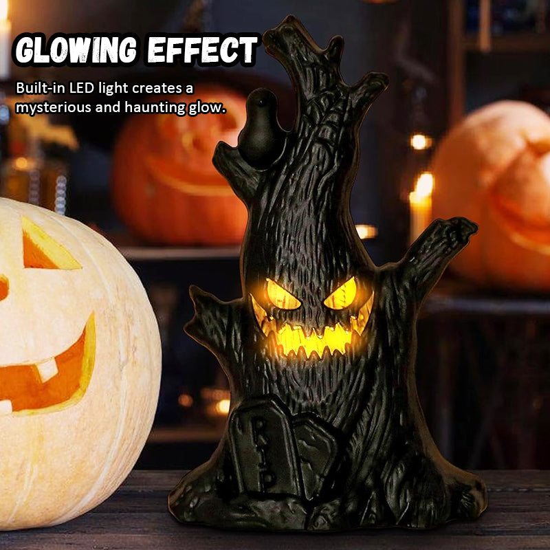 - 🌲 Uniek spookboomontwerp - Kwade grijns en scherpe, gloeiende ogen voor de ultieme griezelige look.