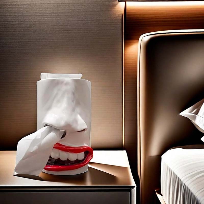 Is het een gewone tissuehouder? Of een kunstwerkje dat je gasten aan het lachen maakt? Misschien wel beide. Eén ding is zeker: met deze grappige neus verdwijnt de saaiheid meteen van tafel.