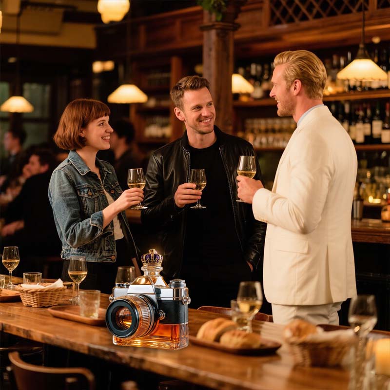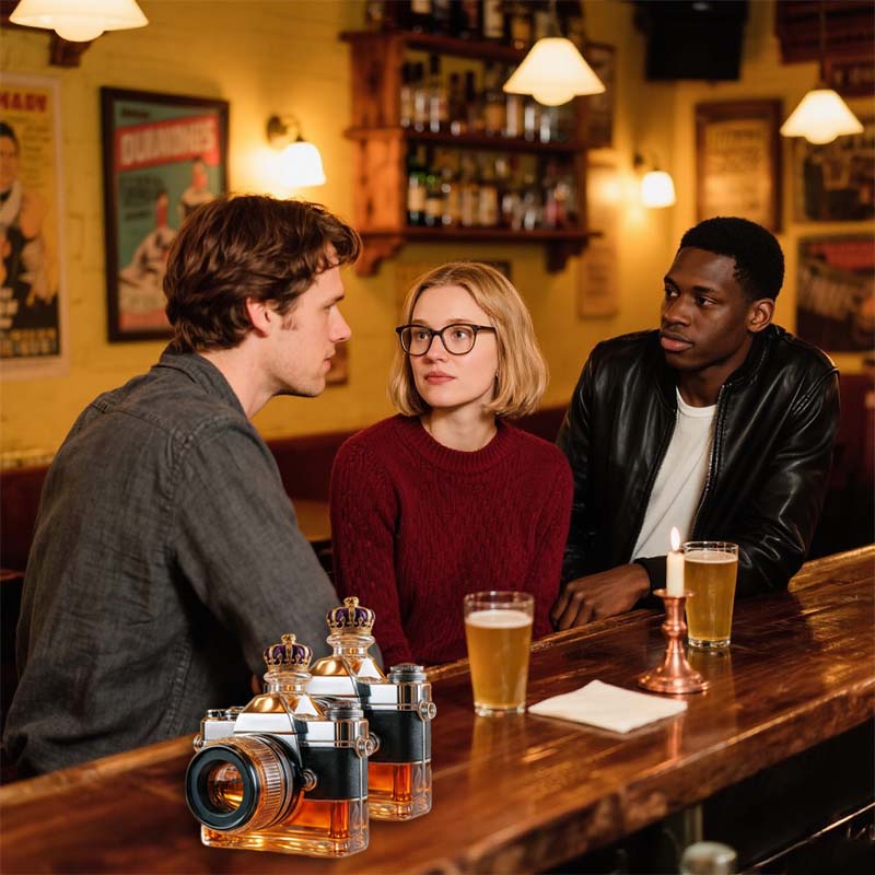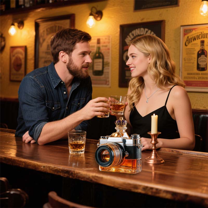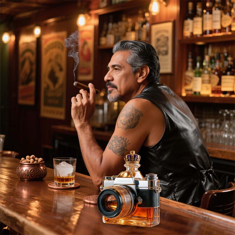 Een fles die door de wereld kijkt als een lens - dit cameravormige glas brengt een vleugje speelse creativiteit in je drankcollectie. Of het nu gaat om koolzuurhoudend water of een amberkleurige cocktail, de manier waarop het licht door de 'lens' breekt maakt van elk drankje een shot dat het waard is om in te lijsten.