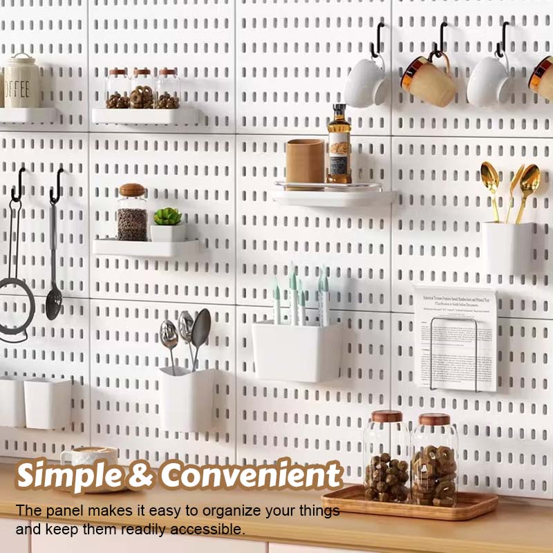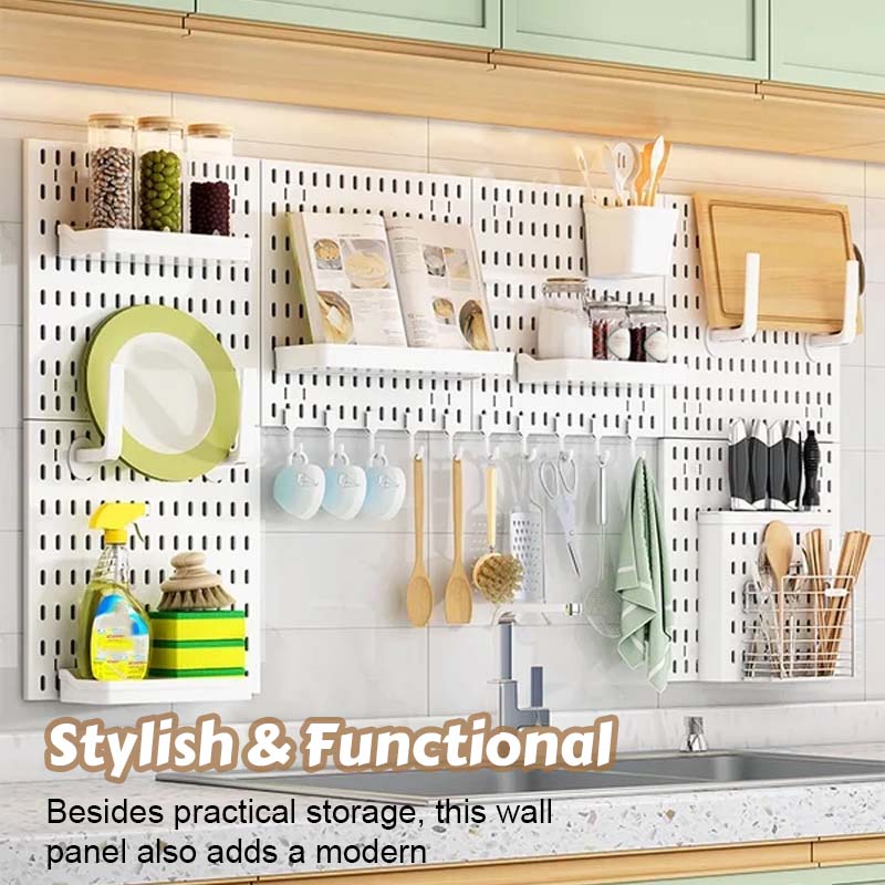Creëer eenvoudig een georganiseerde en stijlvolle ruimte met dit praktische wandpaneel! ✨ Dankzij het slimme ontwerp hoef je niet te boren of schroeven, waardoor je muren onbeschadigd blijven. Ideaal voor woonkamer, keuken, kantoor of slaapkamer – waar je ook extra opbergruimte nodig hebt. 🏠