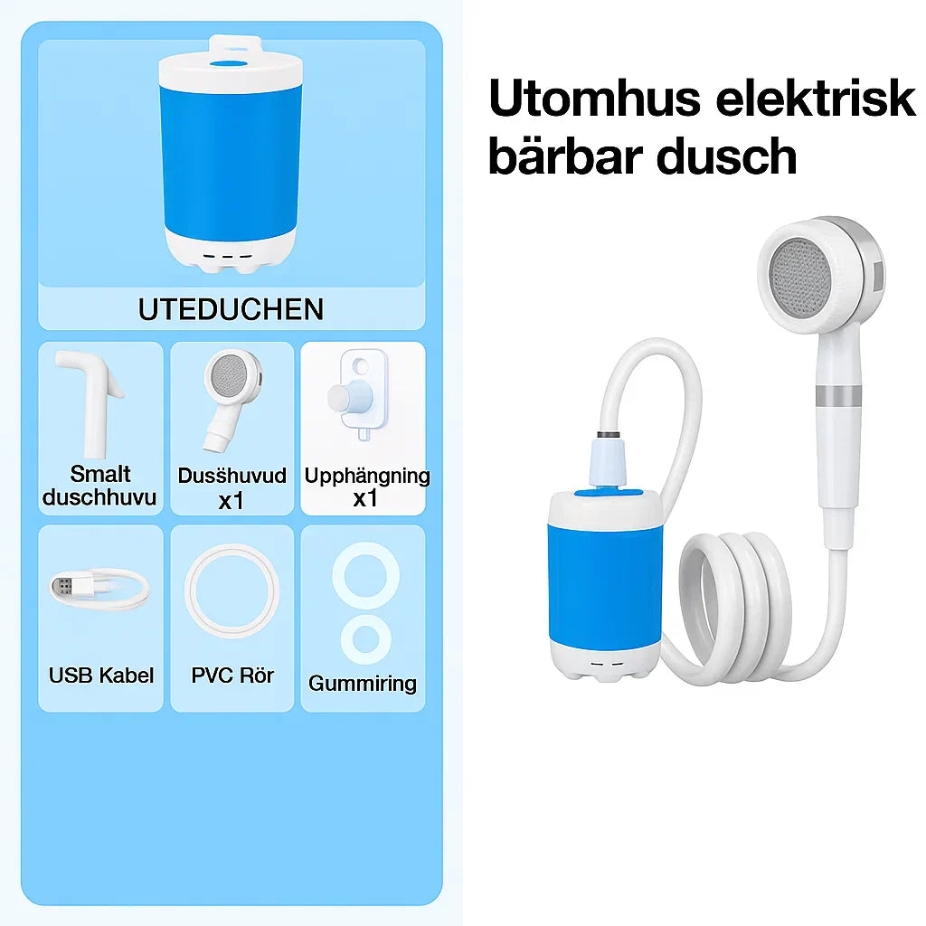 Of u nu in het bos, op het strand of kampeert in de bergen, de elektrische buitendouche zorgt voor een verfrissende douche-ervaring.