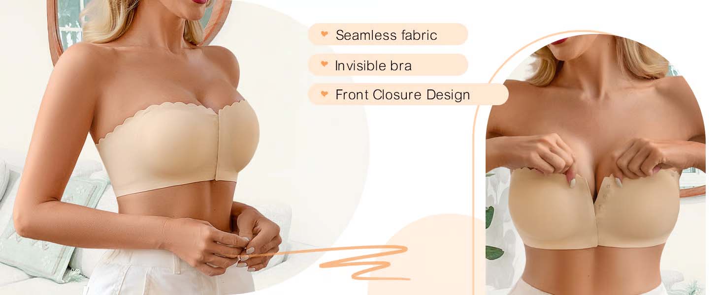 Naadloze strapless bralettes hebben een ontwerp met sluiting aan de voorkant en golvende afwerking aan de bovenkant, wat helpt om de rug minder te belasten, haak- en oogsluiting aan de voorkant voor eenvoudig verwijderen, strapless ontwerp zodat je je schouders en sleutelbeen goed kunt laten zien, erg sexy en aantrekkelijk!